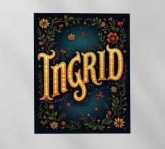 Ingrid ("bella - amata"). Nome popolare che non solo è adornato dai fiori, ma rallegra anche gli occhi.