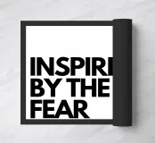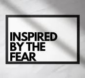 "La frase "INSPIRED BY THE FEAR OF BEING AVERAGE!", impilata su più righe e resa con un carattere sans-serif nero in grassetto su uno sfondo bianco pieno, trasmette un messaggio di ambizione e di spinta a eccellere",