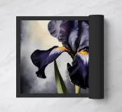 Questa splendida opera d'arte cattura la bellezza di un singolo iris nero in tutto il suo splendore. L'artista ha reso magistralmente gli intricati dettagli del fiore, dalla consistenza vellutata dei petali alle delicate venature delle foglie. I colori ricchi e scuri dell'iris contrastano magnificamente con lo sfondo morbido e tenue, creando un senso di drammaticità ed eleganza. Questo pezzo sarebbe un'aggiunta perfetta a qualsiasi casa o ufficio, aggiungendo un tocco di raffinatezza e stile.