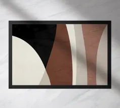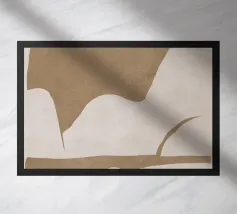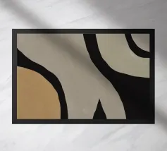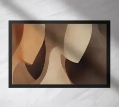 Forme curve e fluide in varie tonalità di beige, tortora e nero creano un senso di movimento e di forma astratta. La composizione offre un'estetica moderna e minimalista, utilizzando una palette di colori tenui per un impatto visivo rilassante.
