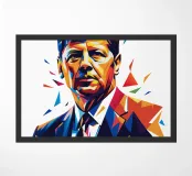 Onorate l'eredità di John F. Kennedy con questo dinamico disegno Pop Art di WPAP. Caratterizzata da audaci forme geometriche e da una vivace tavolozza di colori, quest'opera d'arte reinterpreta l'iconico Presidente in uno stile moderno e astratto. La tecnica WPAP (Wedha's Pop Art Portrait) cattura il carisma e l'influenza duratura di Kennedy sulla storia americana, simboleggiando la sua visione di un futuro migliore. Perfetto per gli appassionati di storia, gli amanti dell'arte e i sostenitori degli ideali democratici, questo disegno è un tributo unico a uno dei leader più ispirati del XX secolo.