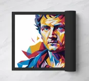 Onorate la leggendaria figura di Giulio Cesare con questo vivace disegno Pop Art di WPAP. Utilizzando audaci forme geometriche e un'accattivante tavolozza di colori, quest'opera d'arte reinterpreta l'iconico condottiero romano in uno stile moderno e astratto. La tecnica WPAP (Wedha's Pop Art Portrait) cattura il genio militare e l'influenza politica di Cesare, simboleggiando il suo ruolo fondamentale nella trasformazione della Repubblica Romana in Impero Romano. Perfetto per gli appassionati di storia, gli amanti dell'arte e gli ammiratori dell'antichità classica, questo disegno è un tributo unico a uno dei leader più influenti della storia.