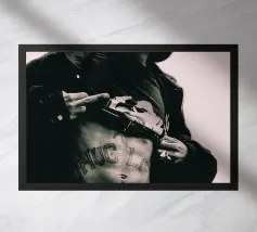Kane fissa l'obiettivo in modo smagliante. Qui ogni sguardo è una dichiarazione di guerra. La sua maglietta bianca sovrasta una cintura firmata, le sue catene brillano nella pallida luce del sole. Conosce le regole del gioco: mai abbassare la testa, mai mostrare le zanne per nulla. È calmo, ma nessuno vuole sapere cosa succede quando non lo è.