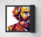 Celebrate le idee rivoluzionarie di Karl Marx con questo dinamico disegno Pop Art di WPAP. Caratterizzata da audaci forme geometriche e da una vivace tavolozza di colori, quest'opera d'arte reinterpreta l'influente filosofo ed economista in uno stile moderno e astratto. La tecnica WPAP (Wedha's Pop Art Portrait) cattura l'appassionata difesa di Marx per la giustizia sociale e la critica al capitalismo, simboleggiando il suo impatto duraturo sul pensiero politico. Perfetto per gli appassionati di politica e gli amanti dell'arte, questo disegno è un tributo unico a uno dei pensatori più significativi del XIX secolo.