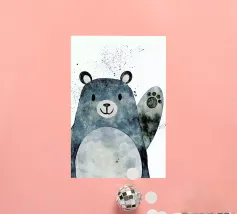 Questo allegro poster per bambini presenta un simpatico orso che saluta i più piccoli con un amichevole saluto! I colori tenui e lo stile artistico e giocoso rendono quest'opera d'arte un accento perfetto per la stanza di ogni bambino. La miscela di acquerelli e schizzi conferisce al poster un tocco creativo che stimola l'immaginazione e crea un'atmosfera allegra. Un regalo ideale per i giovani amanti della natura e degli animali che rallegrerà la stanza!