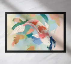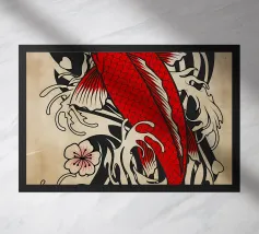 Design con pesce koi in stile linoleografico