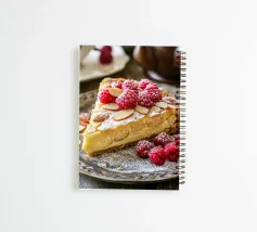 slice raspberries almonds powdered sugar pastry dessert plated plate nuts baked