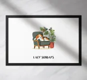 Il disegno "Lazy Sundays" cattura il perfetto relax: un simpatico beagle accoccolato su una grande e accogliente poltrona in una domenica mattina di sole. Per tutti coloro che amano la magia dei momenti di tranquillità, questo disegno è il regalo ideale. Che si tratti di un murale, di una maglietta o di un accessorio decorativo, trasuda intimità e ci ricorda di godere dei piccoli piaceri della vita. Perfetto per gli amanti dei cani, per gli amanti del relax e per tutti coloro che vogliono portare un pezzo di tranquillità domenicale nella loro casa!