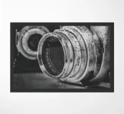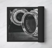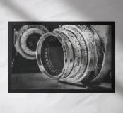Uno scatto in bianco e nero di due obiettivi classici con l'aggiunta di graffi.