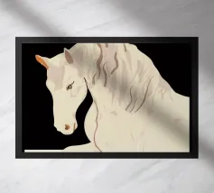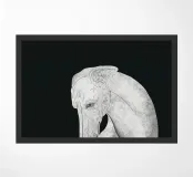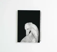Un levriero dalle curve aggraziate, con una superficie grigia strutturata, si staglia su uno sfondo nero, che trasmette eleganza e semplicità. Linee delicate definiscono il muso del cane, sottolineando il suo atteggiamento contemplativo.