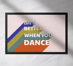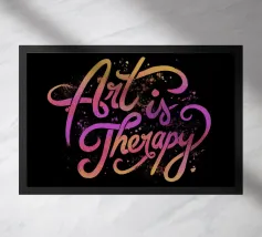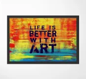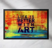 Rosso vivo, giallo brillante e il messaggio: "La vita è migliore con l'arte" Arte che motiva! Un'opera che rende visibile la gioia di vivere.
