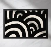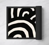 Questo affascinante design con linee curve nere su uno sfondo color crema ricorda le forme astratte delle onde. La composizione dinamica aggiunge energia ed eleganza moderna a qualsiasi ambiente. Perfetto per opere d'arte da parete, tazze, custodie per cellulari, cuscini e altro ancora, questo motivo conferisce un tocco artistico unico a qualsiasi spazio abitativo. Per gli amanti dell'arte minimalista e contemporanea, questo disegno è un elegante richiamo visivo e un regalo ideale per le menti creative.