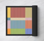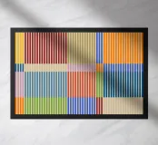 Un motivo geometrico di grande impatto, caratterizzato da sottili strisce verticali in tonalità vivaci di rosso scuro, blu, verde, rosa, giallo e arancione su un morbido sfondo beige. Questo disegno crea un dinamico effetto patchwork con un giocoso gioco di colori e un'estetica moderna di ispirazione Bauhaus. Perfetto per ravvivare l'arredamento della casa, gli accessori, l'abbigliamento e molto altro ancora, grazie al suo fascino pulito e contemporaneo e al vivace stile a righe!