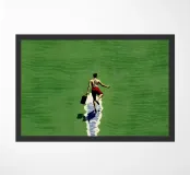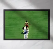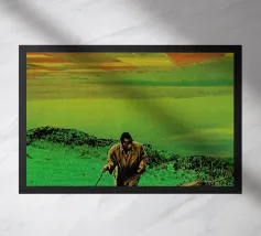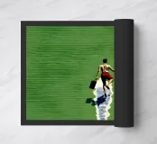 Un'unica figura cammina a piedi nudi su un'enorme superficie verde, ma la sua traccia è fatta di acqua scintillante. Lo stretto sentiero d'acqua attraversa il quadro come una crepa nella vita quotidiana, permettendo alla realtà e al surrealismo di confluire l'uno nell'altro. Con passo deciso, la figura incarna la libertà, l'insolito e l'arte di trovare la propria strada.