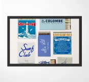 Un mix artistico di fiammiferi d'epoca provenienti da caffè, ristoranti e città costiere emblematiche. Questo disegno emana un fascino retrò e ricorda i viaggi in macchina, le caffetterie e i ristoranti di pesce in riva al mare. Ideale per tutti coloro che amano la tipografia, la storia del design e la magia delle piccole cose, perfetto per cucine, pareti di gallerie o spazi di lavoro creativi.
