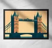 Design minimalista con il famoso Tower Bridge di Londra. Motivo decorativo che rappresenta un'idea regalo ideale per tutti i viaggiatori in Inghilterra. Simbolo della capitale Londra, la più grande città della Gran Bretagna.