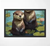 lontre acqua gigli stagno riflessione piante acquatiche animale-ritratto natura animali fiori coppia di lontre zone umide habitat naturale flora fauna acqua calma fauna selvatica ecosistema pelliccia marrone giglio-padiglioni