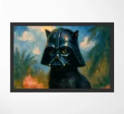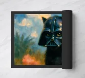 Questo gatto nero con l'elmo di Darth Vader combina la cultura pop con la pittura classica: l'elmo tenebroso incontra fiori dipinti con delicate pennellate - un'insolita miscela di minaccia e idillio. Una dichiarazione umoristica e di stile per chi ama i gatti e conosce il lato oscuro. Perfetto per gli spazi moderni con una strizzatina d'occhio.