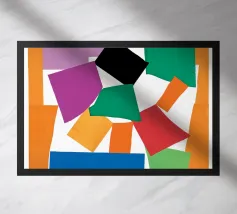 Un'illustrazione pop art con colori vivaci e forme organiche ispirate a Henri Matisse. Un pezzo giocoso ed espressivo espressivo e giocoso con un tocco moderno.