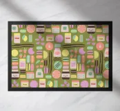 Il design "Macarons" presenta un'elegante disposizione dei popolari pasticcini francesi. I colori vivaci e la composizione armoniosa conferiscono al motivo un'atmosfera elegante e invitante. Ideale per gli oggetti che necessitano di un tocco dolce ed elegante.