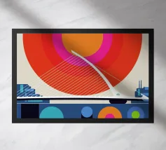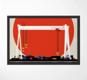 Questa immagine raffigura l'iconica gru del cantiere navale della città. Il design geometrico e i colori vivaci la rendono perfetta per gli appassionati di design scandinavo e di arte di ispirazione industriale.