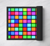 Questo motivo reinterpreta i campi di colore di Gerhard Richter, facendo risplendere quadrati disposti con precisione in elettrizzanti colori al neon e secondo un principio matematico casuale. La superficie e il sottile effetto di retroilluminazione conferiscono alla struttura a griglia minimalista un dinamismo ultra moderno, quasi digitale, per l'ambiente.