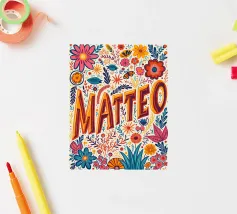 Eines der beliebtesten Namen, International,- im Design das bunte, farbenfrohe Energie ausstrahlt