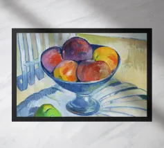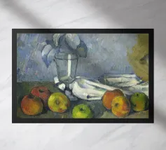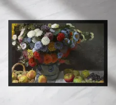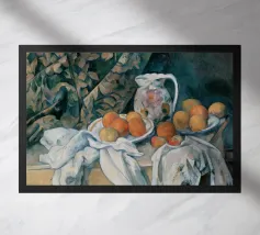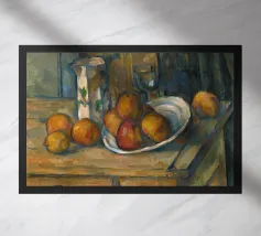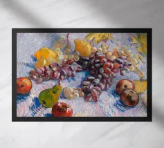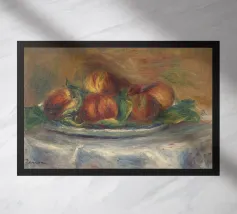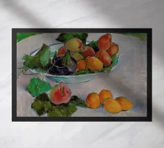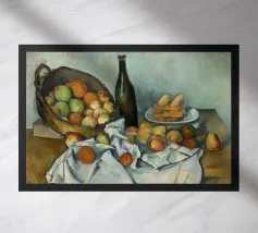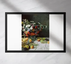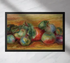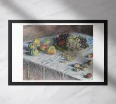 Un'affascinante natura morta del maestro impressionista Claude Monet, che mette in mostra la tranquilla eleganza degli oggetti quotidiani Presenta una disposizione rustica di mele e uva su un tavolo rivestito di bianco, immerso in una morbida luce naturale Cattura la bellezza fugace della frutta matura con pennellate sciolte e tonalità calde e autunnali Un'opera intima che si discosta dai famosi paesaggi di Monet e che è stata dipinta in casa durante il maltempo. Un'opera d'arte senza tempo e rilassante, perfetta per cucine, sale da pranzo o qualsiasi altro interno accogliente Regalo ideale per gli amanti dell'arte, per i cuochi o per chi apprezza l'estetica rustica e la natura morta