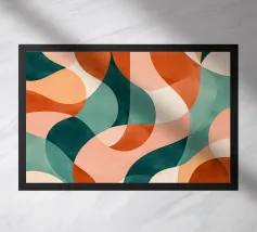 Un caldo motivo moderno di metà secolo, una composizione audace con forme geometriche strutturate.