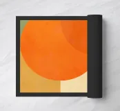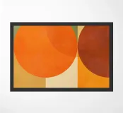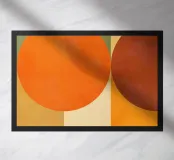 Composizione minimalista di metà secolo con forme geometriche semplici e colori accoglienti, tra cui arancione, marrone, beige e verde acqua, che evocano l'evoluzione del sole in una luminosa giornata autunnale. Con i suoi toni caldi, quest'opera d'arte retrò è in grado di ravvivare qualsiasi ambiente. Una scelta perfetta per case, uffici e hotel. Parte di un duo.