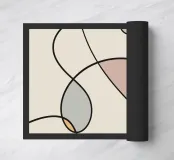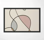 Una serie di linee nere morbide e curve creano un disegno astratto su uno sfondo chiaro. All'interno delle curve sono presenti alcune forme colorate, tra cui quella che sembra essere una goccia in grigio, rosa e giallo.