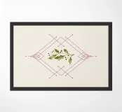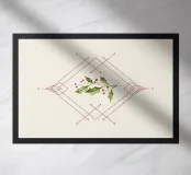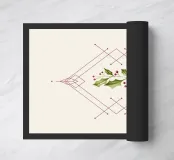 Composizione natalizia minimale, geometria e ramoscello di pianta invernale dipinto in digitale.