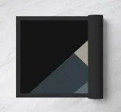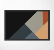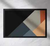 Forme geometriche astratte formano una composizione con audaci linee diagonali che si intersecano in vari angoli. La tavolozza รจ composta da toni tenui, tra cui nero, grigio, beige e ruggine.