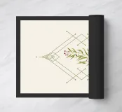 Composizione natalizia minimale, geometria e ramoscello di agrifoglio dipinto in digitale.
