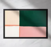 Blocchi di colore minimalisti rosa, verdi e bianchi su uno sfondo color salvia, realizzati con colori acrilici.