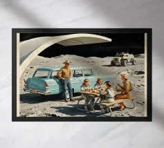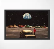 John si stava godendo la sua vacanza sulla luna, ma cominciava a chiedersi come sarebbe tornato a casa... Collage retrofuturistico di Taudalpoi.