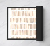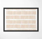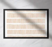 Un disegno astratto caratterizzato da più file di linee verticali marrone chiaro uniformemente distanziate su uno sfondo bianco, che crea un motivo visivamente coerente e uniforme, ideale per progetti artistici e di design minimalisti.