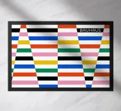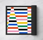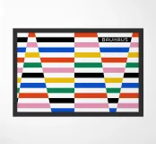 Questo espressivo design Bauhaus combina strisce di colore verticali e triangoli grafici per creare un quadro d'insieme ritmico ed energico. Linee chiare, colori vivaci e un gioco geometrico di movimento e struttura: un'opera d'arte moderna che illuminerà qualsiasi ambiente.