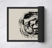 Forme organiche moderne, linee e schizzi di vernice in nero e con sfondo beige. Opera d'arte astratta in stile minimalista. L'opera d'arte minimalista si adatta bene a uno stile di vita moderno, essenziale, bohémien e industriale. Se vi piace la semplicità e l'eleganza.