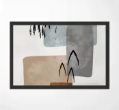 Arte digitale astratta con linee, forme organiche e geometriche con texture e pennellate nere nei toni morbidi della terra di marrone, grigio, blu e beige. Arte moderna per interni essenziali, scandinavi, bohémien e boho. Godetevi l'arte digitale minimalista con forme e linee morbide. Adatto a soggiorni, camere da letto, uffici e corridoi.