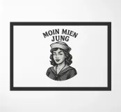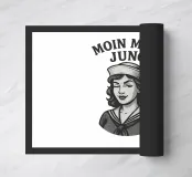 Un design marittimo ironico per chi vuole indossare "Moin mien Jung" con il sorriso sulle labbra. L'impertinente marinaio in stile streetwear vintage è perfetto per gli amanti della costa, dell'aurora boreale e per tutti coloro che vogliono il fascino del porto sulla loro camicia o felpa con cappuccio.