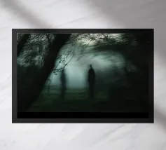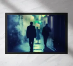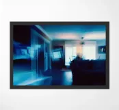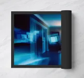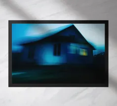Trasformate il vostro spazio con questa rappresentazione eterea di un interno immerso in sfumature bluastre e nebulose. Perfetto per un tocco di mistero artistico.