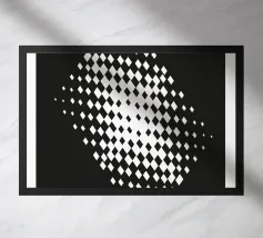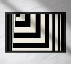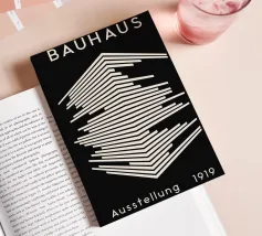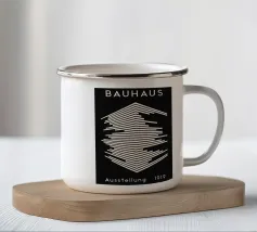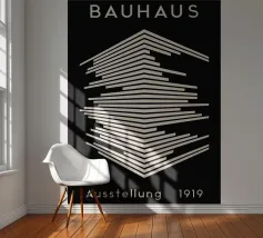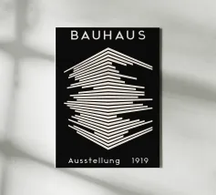 Questo straordinario design proveniente dalla mostra Bauhaus del 1919 combina la geometria minimalista con un'estetica moderna e senza tempo. La precisa disposizione delle linee su uno sfondo nero profondo crea un affascinante effetto tridimensionale. Perfetto per prodotti come murales, magliette, tazze o cuscini, questo motivo porta l'iconico stile Bauhaus nella vostra casa. Un must per gli amanti dell'arte moderna, del design grafico e della decorazione elegante.