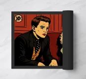 Copertina del fumetto Pop Art Mr. Brightside | Arte da parete ispirata ai The Killers | Poster Nostalgia Retro Indie Rock "La gelosia, che trasforma i santi in mare...". Portate l'angoscia, il dramma e lo sleaze indie dei primi anni 2000 a colori con questa stampa pop art digitale ispirata a "Mr. Brightside" dei The Killers. Con lo stile di una copertina di un fumetto d'epoca, questo pezzo cattura la paranoia a spirale e lo strazio di un uomo che vede scivolare via tutto - mascara sbavato, denti stretti, occhi spalancati.