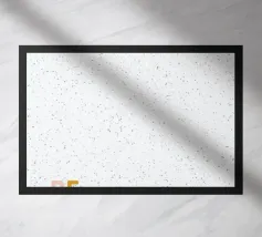 Parte superiore in poliestere di facile manutenzione e parte inferiore in gomma nera antiscivolo.