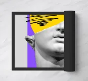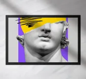 Un volto stilizzato ispirato ai busti antichi, attraversato da circuiti luminosi. Il passato incontra la tecnologia.