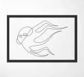 Questa straordinaria illustrazione in bianco e nero cattura la grazia fluida di un polpo in un'unica linea continua. Il design minimalista mette in risalto i tentacoli fluidi e la forma organica della creatura, creando un pezzo forte ma delicato. Perfetto per gli interni moderni, ideale per gli amanti della vita marina, dell'arte contemporanea e dell'estetica pulita.