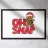 Un allegro personaggio di pan di zenzero che indossa un cappello e una sciarpa da Babbo Natale è affiancato dalla scherzosa frase "OH SNAP" in lettere rosse.