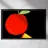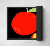 I colori rossi e gialli brillano su una fetta d'arancia. Il design semplice e deciso enfatizza le tonalità vivaci e la sensazione di freschezza del frutto.