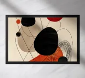 Una raffinata composizione astratta in cui forma, linea e spazio interagiscono in una tensione silenziosa. Forme morbide e organiche ancorano l'opera, mentre delicati percorsi lineari orbitano e si intersecano, suggerendo movimento, ritmo e forze invisibili in gioco. La tavolozza sobria e la sottile texture della superficie conferiscono all'opera una qualità calma e tattile che appare intenzionale e senza tempo.